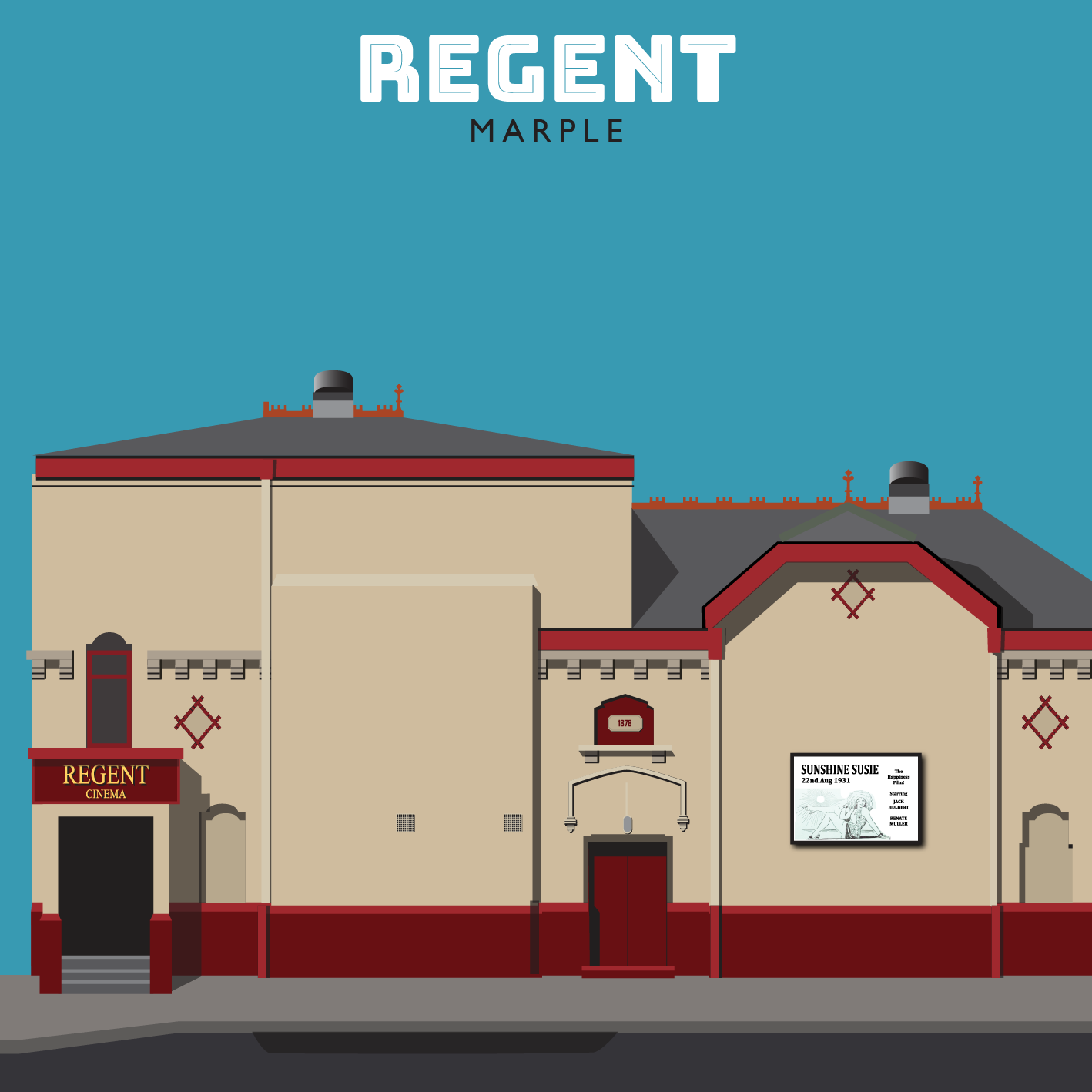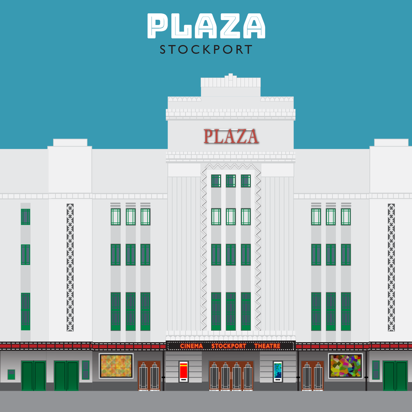 Digital artworks depicting classic cinema architecture of the north of England.