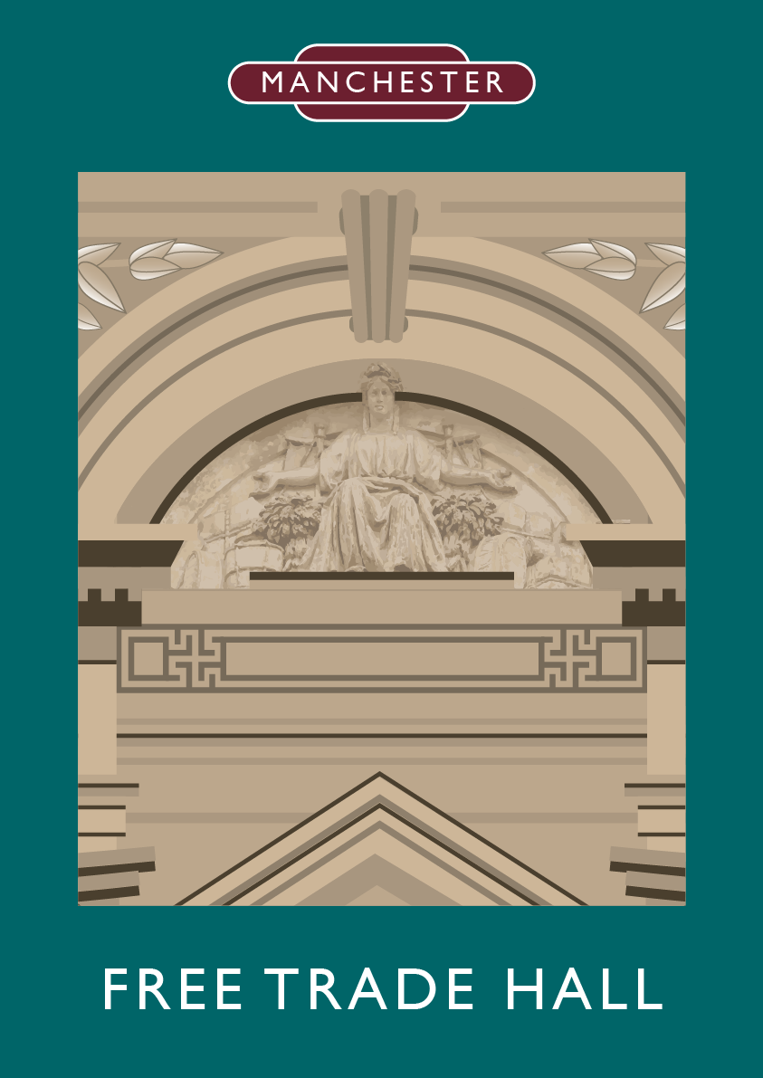Digital vector artwork depicting landmark buildings in a style reminiscent of the classic travel poster of the 1920's and 1930's.