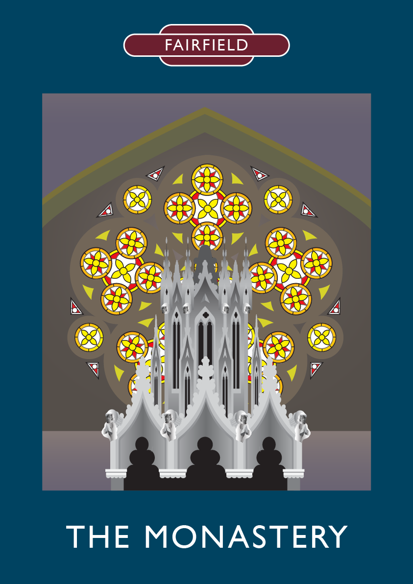 Digital vector artwork depicting landmark buildings in a style reminiscent of the classic travel poster of the 1920's and 1930's.