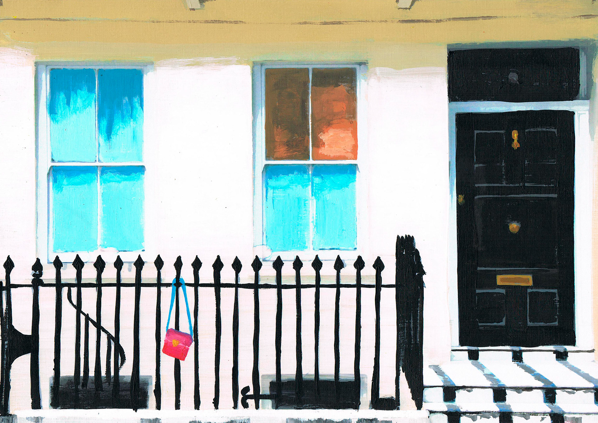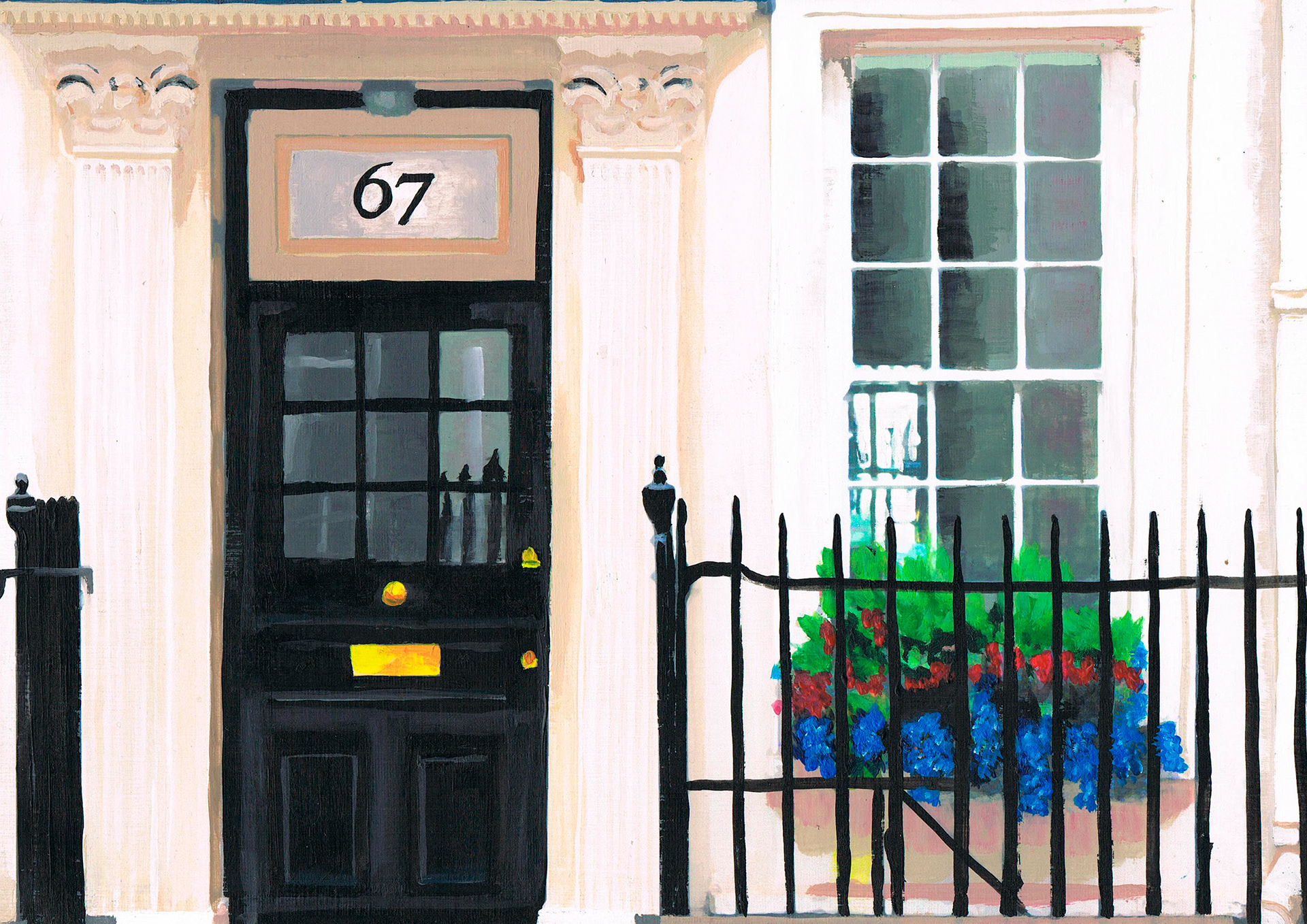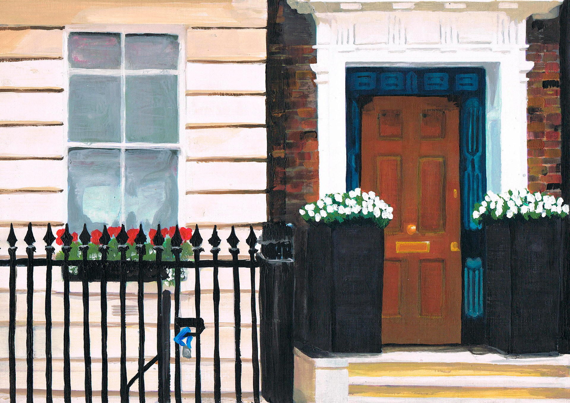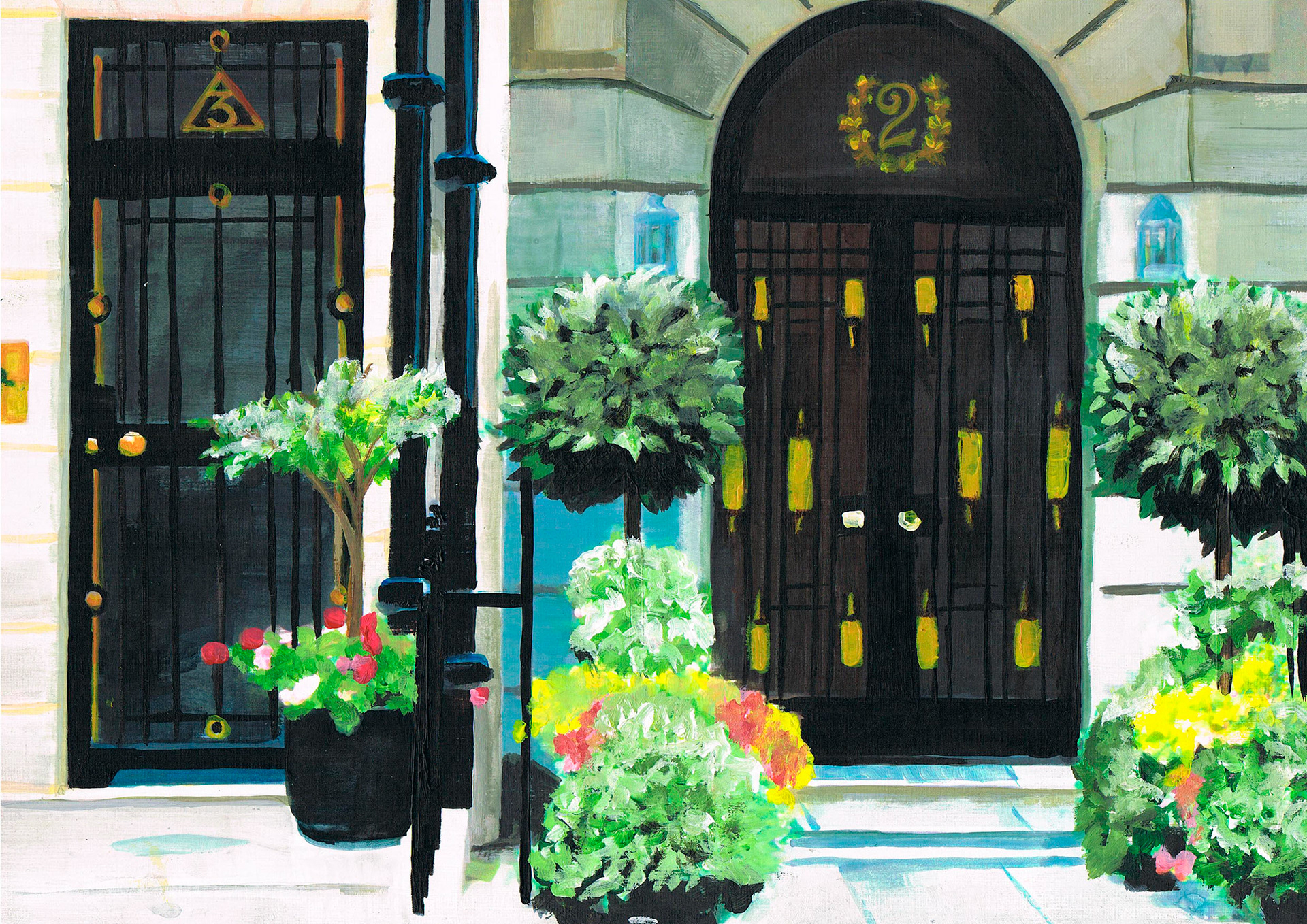 Acrylic paintings of house facades in Mayfair, London