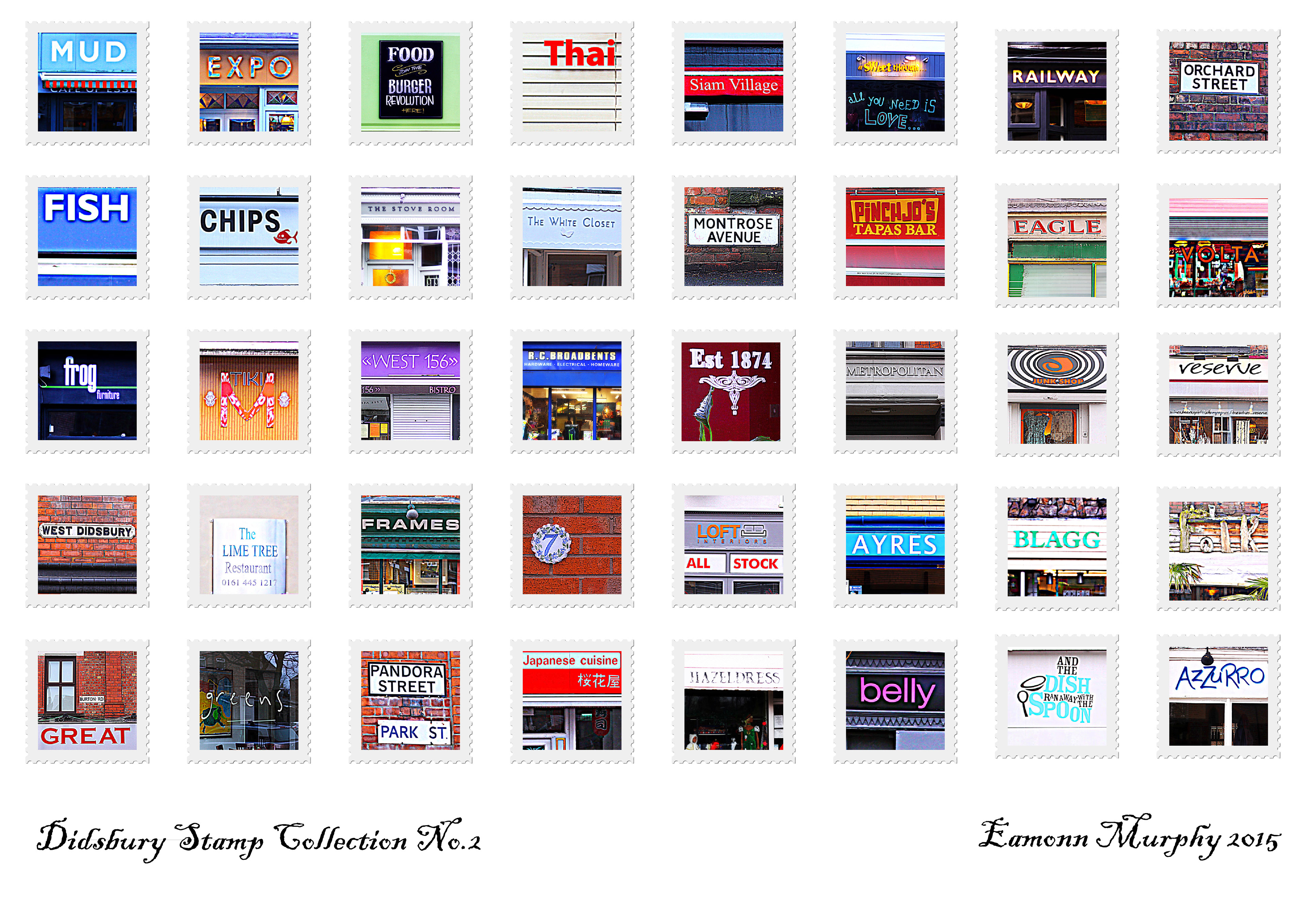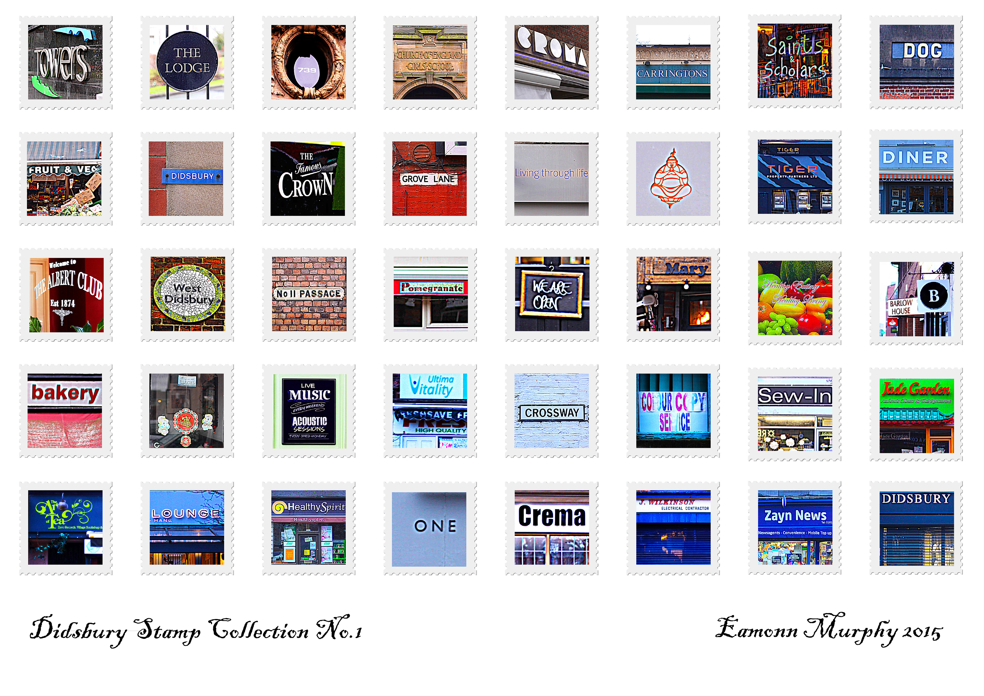 Stamp collection from original photography in Didsbury Manchester